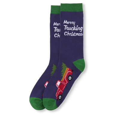 Hatley Little Blue House Men's Crew Socks Merry Trucking Christmas