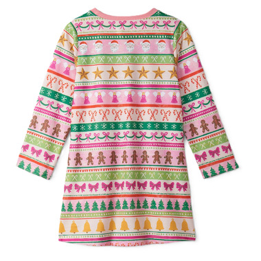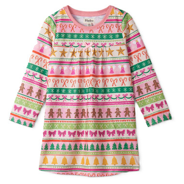 Hatley Long Sleeve Nightdress Pink Fun Fair Isle