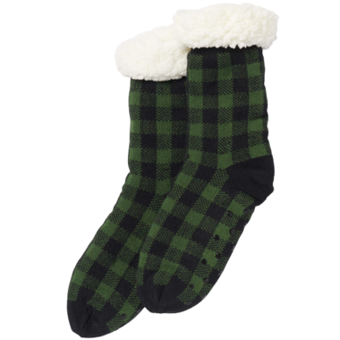 The perfect way to wind down after a long day on your feet, these cozy cabin socks feature a sherpa fleece lining, a slip-resistant sole and were made with your comfort in mind!