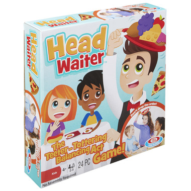 Includes: Head Waiter tray with adjustable strap, 10 plastic foods, 12 game playing cards and easy instructions.