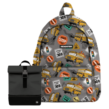 Headster Kids Headster Kids Backpack Bus Ted Grey & Lunchbox Pepper Charcoal Bundle