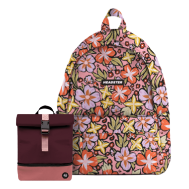 Headster Kids Backpack Retro Bloom Peaches & Lunchbox Berry Jam Bundle
