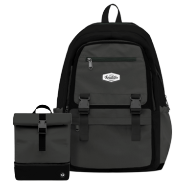 Headster Kids Colourblock Backpack & Lunchbox Pepper Charcoal Bundle