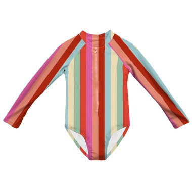 These stripes are a delight for kids who enjoy making a statement! The perfect choice for providing extra coverage and sun protection for your little one. Designed with comfort and style in mind, this swimsuit is a must-have for their water adventures. The one-piece design provides a secure fit, keeping the swimsuit in place as they splash and play. With its long sleeves and UPF50 rated fabric, this swimsuit offers added sun protection for your child's delicate skin.