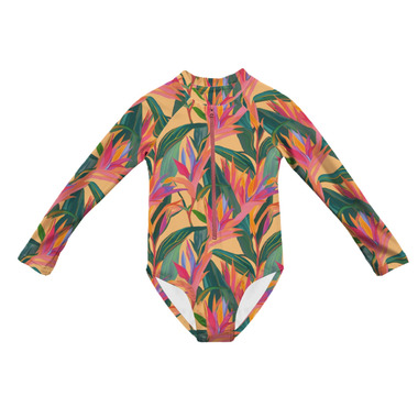Headster Kids Long Sleeve One Piece Swimsuit Jungle Mist Mango