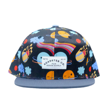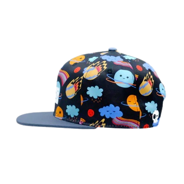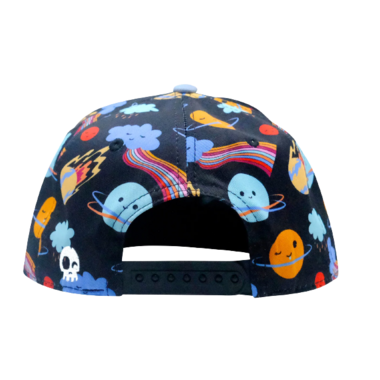 Outer space! A playful spin on our solar system, your kiddo will love this hat if he's looking to the stars! Easily adjust the hat with a snapback closure that will grow with your child. Made with UPF50 fabric, it will keep your kid's head safe from the sun.