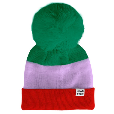 Headster Kids Tricolor Beanie Lined With Fleece Tokyo Red