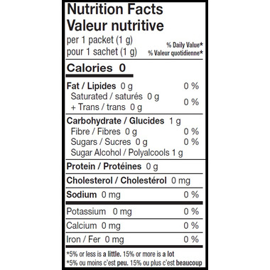 Ingredients: Erythritol, Stevia leaf Extract (Rebaudiosile A).
