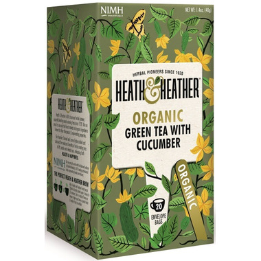 Heath & Heather Organic Green Tea & Cucumber teabags have been expertly blended to create a naturally cool and refreshing beverage, that naturally supports your well-being.