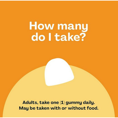 Adults: take 1 gummy daily. Take with food, a few hours before or after taking medications or other natural health products.
