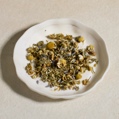 Made with a blend of calming herbs including organic chamomile, passionflower, lemon balm, and lavender designed to help you relax. Pour a tender loving cuppa tea to help wind down at the end of the day or any time you need a restorative moment.