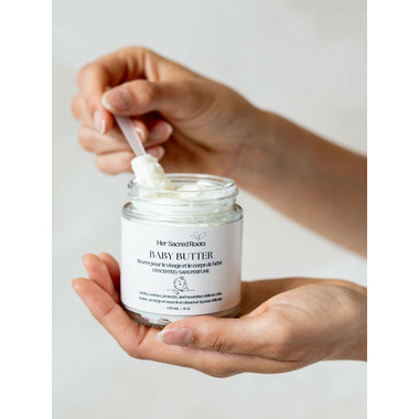 Our best-selling body butter and one of our most loved products, Baby Butter is a gentle, minimalist formula designed to moisturize and soften delicate skin. Favoured by mamas, babies, and anyone with sensitive skin, this rich yet simple butter offers a smooth, comforting texture that customers trust and return to again and again.