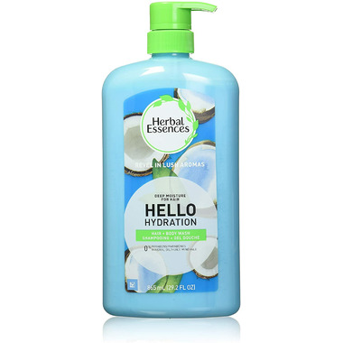 Hi there. Meet your hairs new BFF Herbal Essences Hello Hydration. Its like a moisturizing spa treatment for your hair. This hydrating moisture rich shampoo will leave your hair feeling pampered. And while you shower, it's oh-so-yummy coconut scent will transport you straight to the tropics.