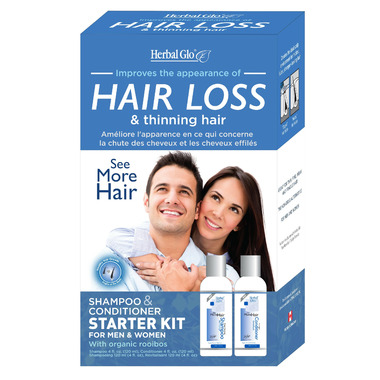 See results with the Herbal Glo See More Hair Shampoo & Conditioner Starter Kit.  This non–prescription formula contains a complete and comprehensive blend of organic botanical extracts, herbs, proteins and vitamins. It effectively removes toxins and impurities, which can often lead to thinning hair.For Men & Women.