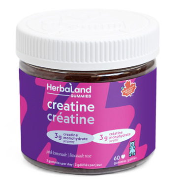 Medicinal ingredients: Per gummy (3 g): Creatine monohydrate 1000 mg. Non-medicinal ingredients: Maltitol, Water, Glycerin, Pectin, Citric acid, Natural flavour, Sodium citrate, Organic rice flour, Organic sunflower oil, Anthocyanins, Organic stevia leaf extract.