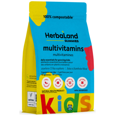 Multivitamins gummies for kids are Herbaland's most advanced multi-vitamins and minerals formula yet with natural vitamin E from sunflowers and the most bio-available form of vitamin B12. These delicious gummies are made with a new plant based, organic and sugar-free formula!