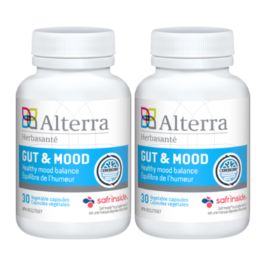Alterra Gut & Mood is a specialized probiotic and botanical blend designed to support both gastrointestinal health and emotional well-being. Featuring the clinically studied Cerebiome blend along with saffron extract (safr'insideΙ), this formula helps reduce stress-related gastrointestinal discomfort, such as nausea and abdominal pain, while promoting a healthy mood balance. Ideal for managing mild to moderate stress and premenstrual symptoms, Gut & Mood offers comprehensive support for physical and emotional harmony.