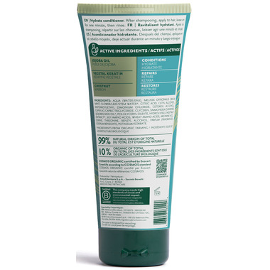 Give your hair the silky, hydrating treatment it deserves with the Hydrate Conditioner. Perfect for dry and frizzy hair, this conditioner is enriched with 99% natural ingredients, including vegetal keratin and organic chestnut extract. It deeply nourishes, improves elasticity, and tames frizz, leaving hair smooth, soft, and protected from external stress. COSMOS Organic certified and eco-friendly, this conditioner is dermatologically tested on sensitive skin and suitable for vegans.