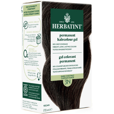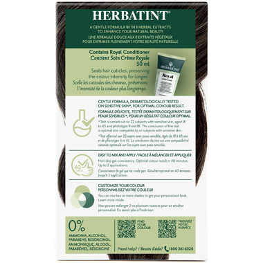 Herbatint 170 ml permanent haircolour, tested on sensitive skin, ammonia-free, offering 100% grey hair coverage. High tolerance and performance, gentle formula, intense and natural colour.