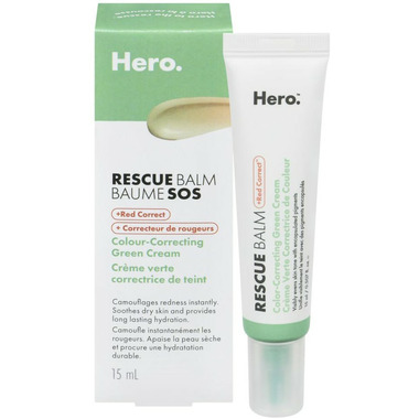 Hero Rescue Balm Colour-Correcting Green Cream contains colour changing pigments that helps neutralize visible redness and support skin recovery after a blemish. Formulated for moisturization, this green-tinted cream is non-comedogenic and dermatologist testedgentle enough for dry or sensitive skin.