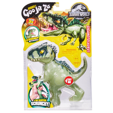 Super Squishy, Super Stretchy. The Goo Jit Zu Jurassic World Heroes are super squishy and super stretchy. Giganotosaurus stretches up to 3 times her size! She comes with her own unique goo filling.