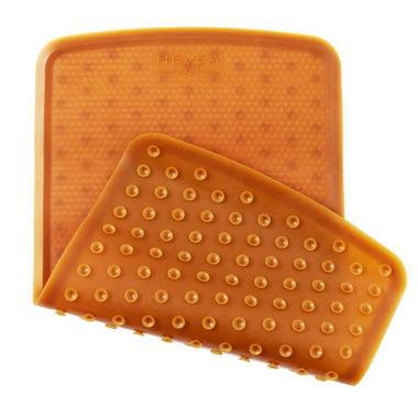 - HIGH QUALITY DANISH DESIGN - HEVEA Bath Mats are durable with an anti-slip design. Their 215 suction cups are evenly spaced throughout the bottom of the mat, with a stylish top that is designed to avoid slippage while still feeling comfortable and soft for child֒s bottom or your feet