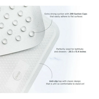 Scandinavian designed in beautiful earthy and natural colors, their Big Bath Mats have 299 suction cups throughout the bottom of the mats to keep them firmly in place, with a stylish anti-slip design along the top that is soft and comfortable to the touch. The perfect bath mat for use in showers and bathtubs, as well as in wet areas where slippage is a concern. Their natural rubber Bath Mats are eco-friendly - made with upcycled natural rubber off cuts from the manufacturing process - safe for both you and the planet. HEVEA Bath Mats meet the strictest of international standards.Big Bath Mat Size