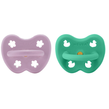 This two-pack of HEVEA 100% Natural Rubber Pacifiers is perfect for babies and toddlers from 3 to 36 months. HEVEA pacifiers feature a seamless one-piece build that makes them easy to clean and hygienic. The natural rubber teat and face ensure the pacifier is soft to touch and gentle on your baby's face and lips. And the fun cut out shapes on the face ensure your baby’s safety while also having some adorable fun!
