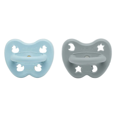 Hevea Natural Rubber Pacifier with Orthodontic Teat Pack Blue & Grey