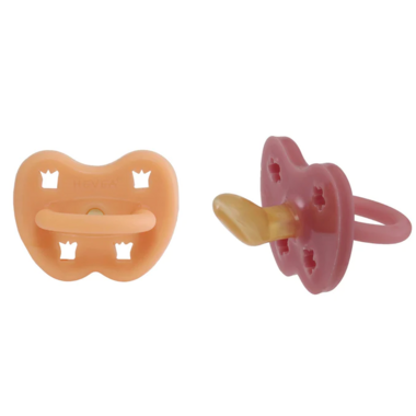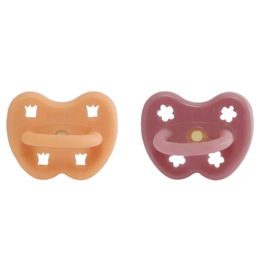 Hevea Natural Rubber Pacifier with Orthodontic Teat Pack Apricot & Blush