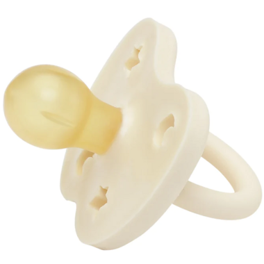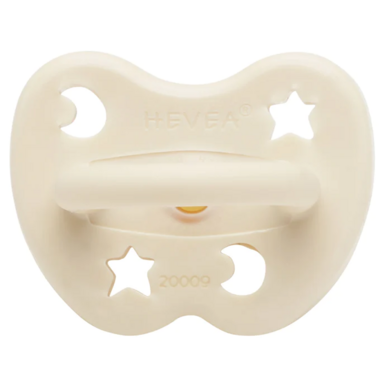 This single-pack HEVEA 100% Natural Rubber Pacifier comes in several beautiful color choices perfect for newborns and babies 0+ months. HEVEA pacifiers feature a seamless one-piece build that makes them easy to clean and hygienic. The natural rubber teat and face ensure the pacifier is soft to touch and gentle on your baby's face and lips. And the fun cut out shapes on the face ensure your babys safety while also having some adorable fun!