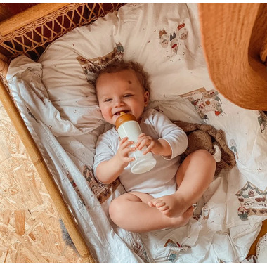 This is the replacement nipple for the HEVEA Wide Neck Baby Glass Bottle.The one-piece design nipple is made entirely from their beloved 100% natural rubber, and seals onto the bottle neck perfectly tight - making additional plastic accessories unnecessary! The nipple teat is cherry-shaped and ribbed to feel like mom's breast, and an anti-colic valve is designed directly within the nipple.