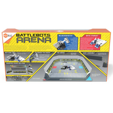 Suit up your BattleBots for an action-packed match with the new Arena 4.0! Push your enemies into two corners of the arena to knock off their weapons with the interactive hammers. BattleBots fans can experience the excitement that comes with engineering your very own fight. This set includes the reigning champion BITE FORCE and its challenger Blacksmith! Come up with your own strategy to beat the champ!