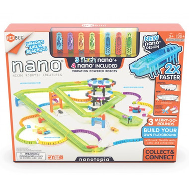 Three merry-go-round obstacles and four additional HEXBUG nanos are included! Collect, connect, and construct with nanotopia from HEXBUG!