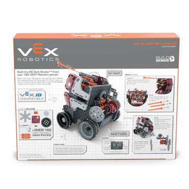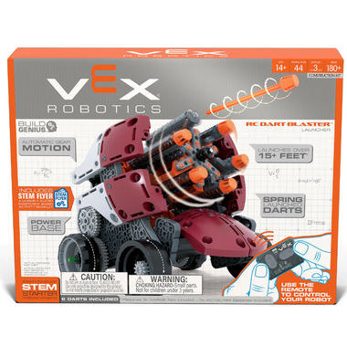 Bring the adventure to life with the VEX Robotics RC Dart Blaster by HEXBUG. Build the base then use the IR remote to steer the rover. Once you've got it in position, hit reverse and launch up to 6 darts at your target!