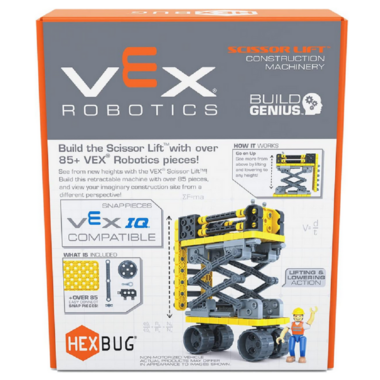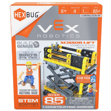 Expand your construction set with the VEX Scissor Lift! Like all of the VEX construction builds, the Scissor Lift has a working mechanism allowing it to work and function just like a real scissor lift. Raise and lower the upper platform to new heights. The collection comes with over 85 pieces and a mini-figure worker. Included in this set are step-by-step instructions that allow kids to build a working scissor lift while learning STEM-based skills and a STEM experiment guide and parent sheet to take their mathematics and engineering learning even further.