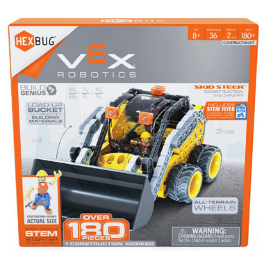 Keep rolling with the VEX Robotics Steam Roller by HEXBUG! Building onto VEX Construction Collection, this construction build is loaded with features including a large rolling drum, active steering capabilities, and a control seat for your VEX mini-figure worker! Utilizing the STEM-based VEX IQ construction system, this set includes over 100 pieces for you to build and engineer your very own steam roller! Plus, extend your mathematics and engineering learning with the included STEM experiment guide and parent sheet!