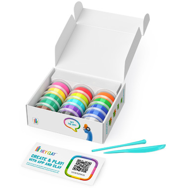Roar into creativity with 6 prehistoric pals! Includes 15 cans of clay, 2 tools, and app access for sculpting Brachiosaurus, Triceratops, and more.
