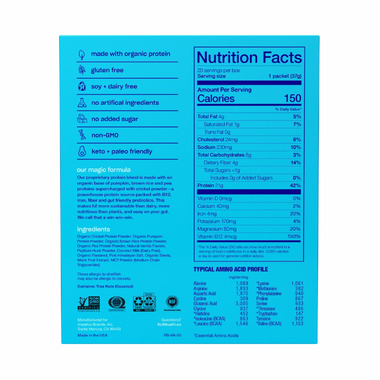 • CLEAN ORGANIC PROTEIN: NON-GMO Project Verified, low glycemic, gluten free, dairy and lactose free, sugar free, and free from whey or soy ingredients. Keto and Paleo friendly