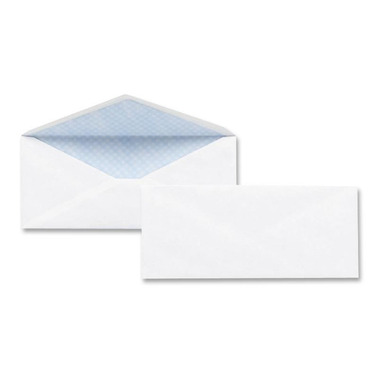 High count boxed envelopes are made from 20 lb. white wove stock. Feature open side design, diagonal seam construction and gummed flaps for a secure seal. Envelopes measure 4-1/8" x 9-1/2". Bluelined version includes interior design to protect privacy of contents.