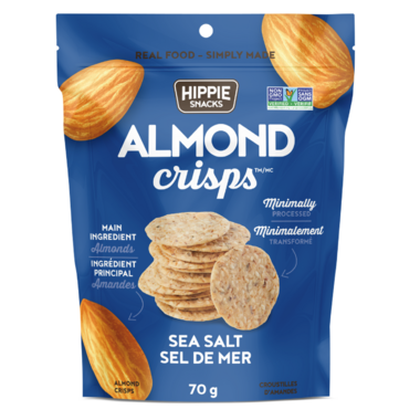 Hippie Snacks Almond Crisps Sea Salt flavour. Minimally processed.