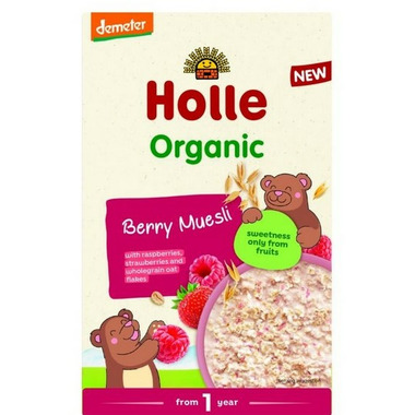 Wholegrain oat flakes** 81%, sultanas* (crushed, dried and oiled with sunflower oil*) 7%, banana powder* 5%, wholegrain spelt flour**2 5%, fruit* in variable proportions 2% (raspberry flakes* (raspberry puree*, wheat flour*), strawberry pieces* freeze-dried), thiamin (vitamin B1, according to the law) *from organic agriculture **Demeter (from biodynamic agriculture; total demeter percentage 86%) 2 a type of wheat May contain traces of soy, hazelnuts and almonds.