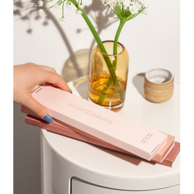Homecoming incense is made from pressed wood and infused in-house using a blend of premium essential oils, phthalate-free fine fragrance, and dipropylene glycol, a synthetic base commonly found in body care and home fragrance products.Incense is hand-dipped and hand packaged in Vancouver, B.C, and every box contains 20 hours of sensory bliss.