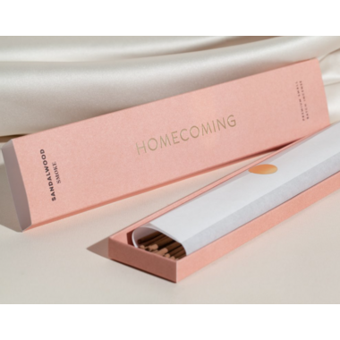 Homecoming incense is made from pressed wood and infused in-house using a blend of premium essential oils, phthalate-free fine fragrance, and dipropylene glycol, a synthetic base commonly found in body care and home fragrance products.Incense is hand-dipped and hand packaged in Vancouver, B.C, and every box contains 20 hours of sensory bliss.