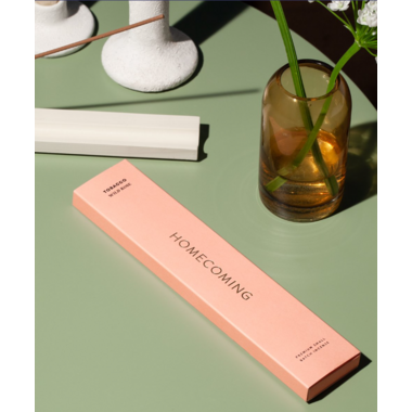 Homecoming incense is made from pressed wood and infused in-house using a blend of premium essential oils, phthalate-free fine fragrance, and dipropylene glycol, a synthetic base commonly found in body care and home fragrance products.Incense is hand-dipped and hand packaged in Vancouver, B.C, and every box contains 20 hours of sensory bliss.