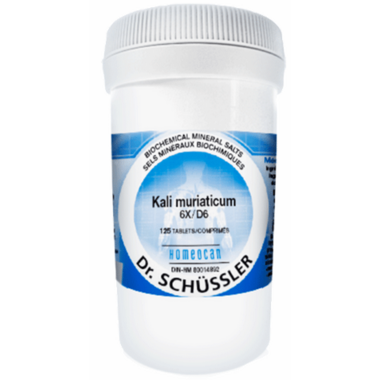 Medicinal ingredient: Kali muriaticum 6X or 12X