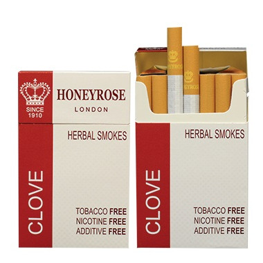 Honeyrose Clove Herbal Cigarettes are specially blended with a dark and spicy clove flavour. These cigarettes have a tar level of 10 mg. Packaged in a Slide n' Shell box.