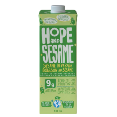 A fortified sesame beverage that is unsweetened, planet friendly and has 9g of protein per 250mL serving.