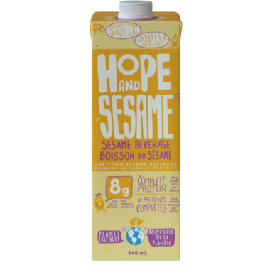 A vanilla fortified sesame beverage that is unsweetened, planet friendly and has 8g of protein per 250mL serving.