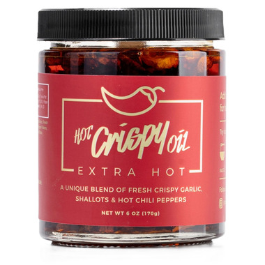 Hot Crispy Oil is a unique recipe of blended extra virgin olive oil, fresh fried garlic, shallots, and chili peppers.